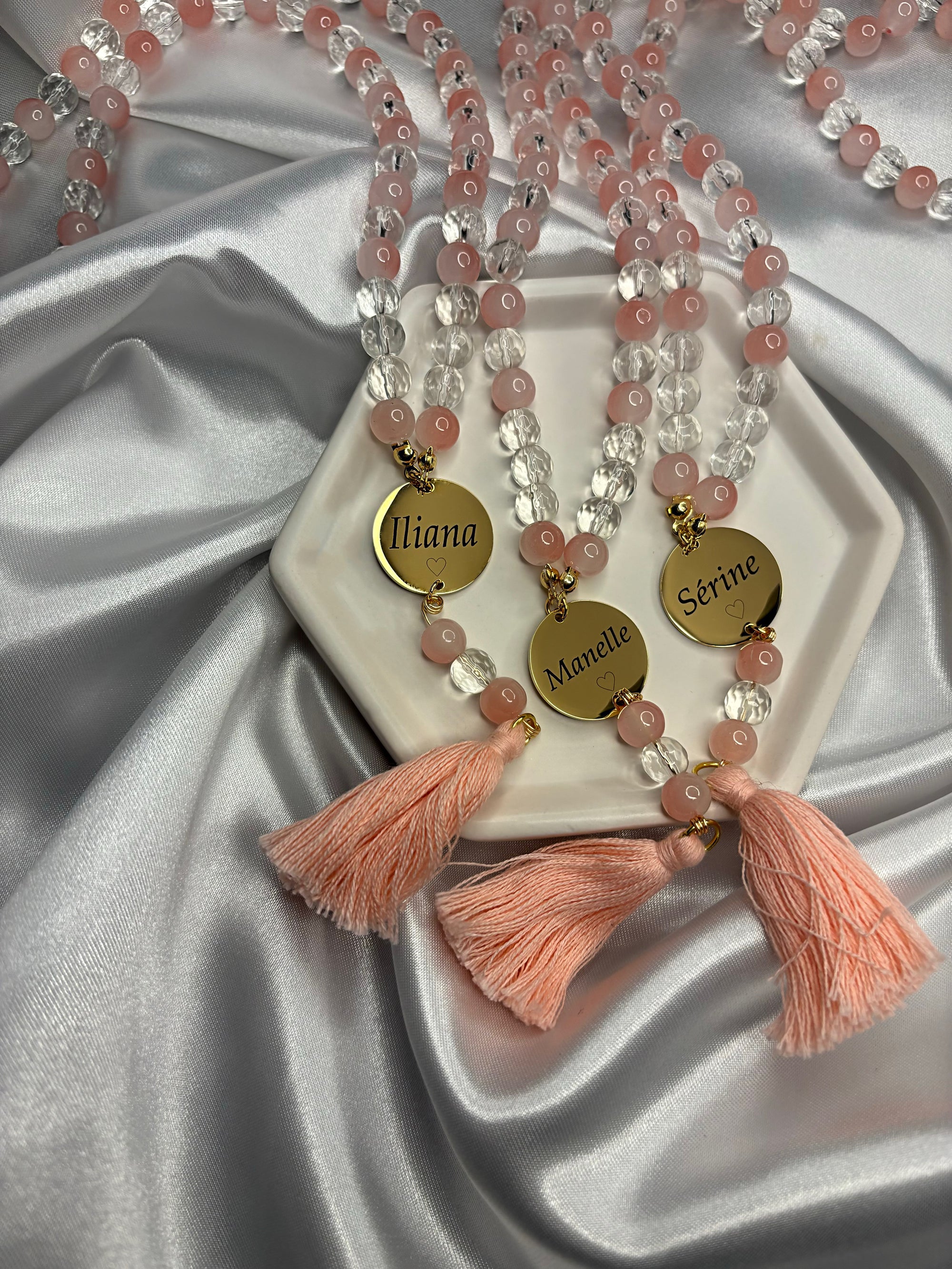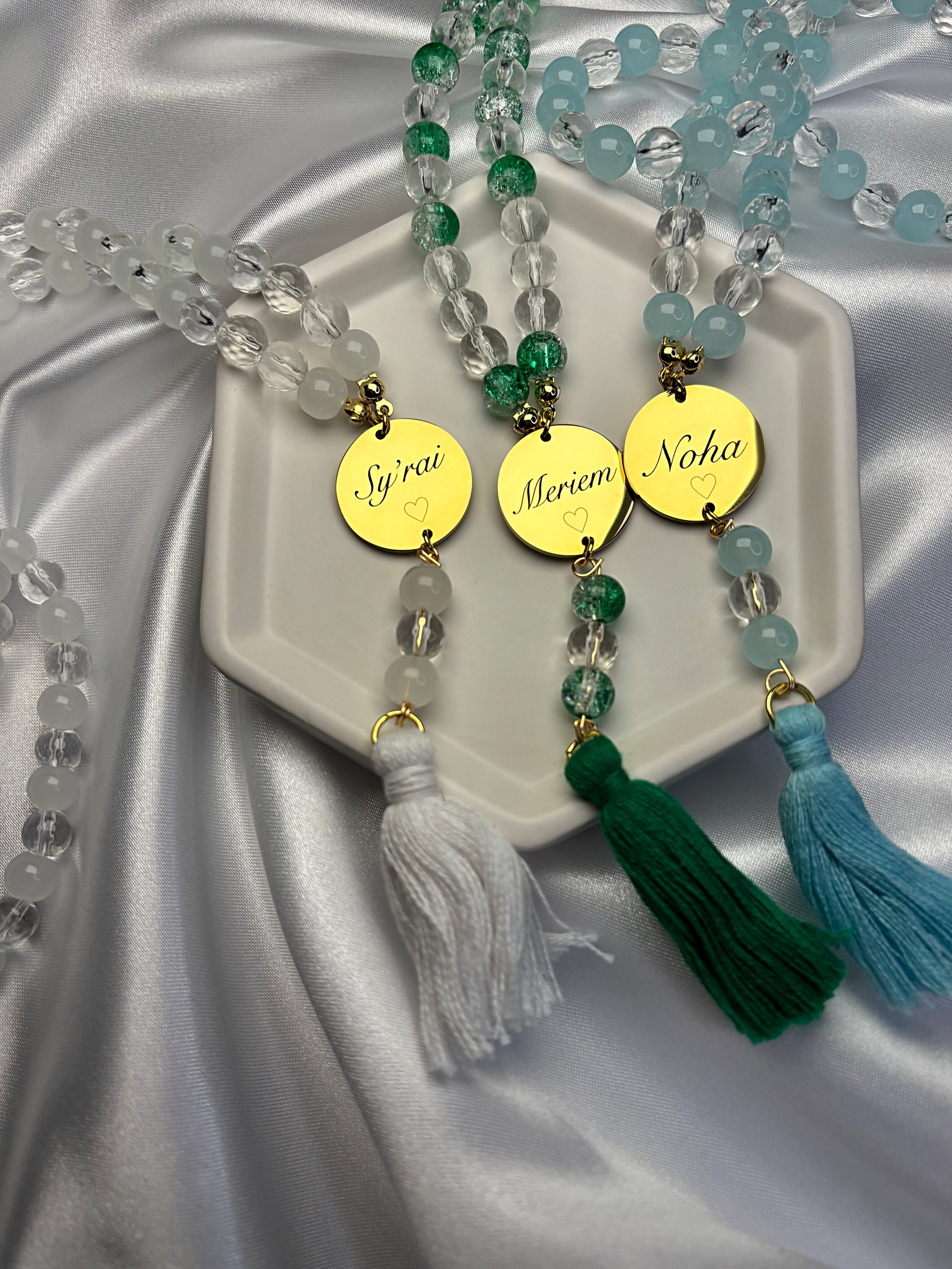 Entièrement imaginez par la créatrice de Maison Nahary, notre chapelet est fait de 66 perles en verre et d'un fil en nylon, il a été conçu pour être très résistant !